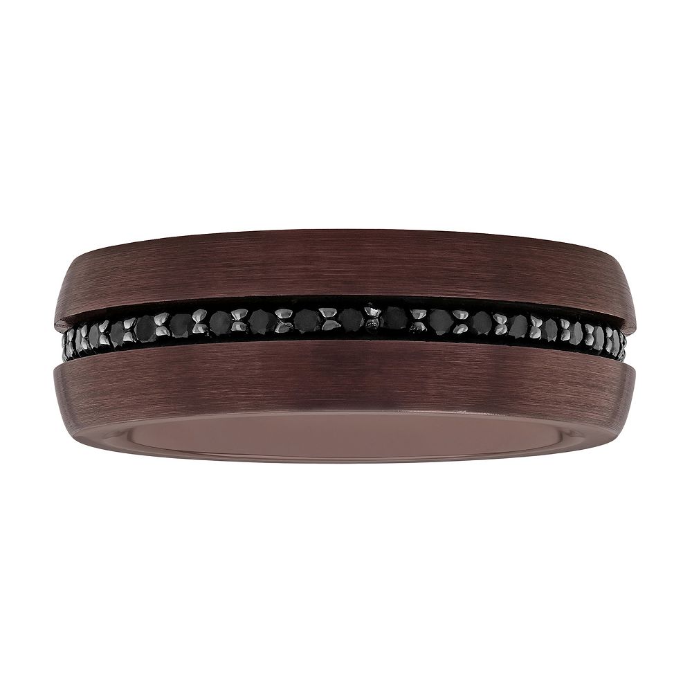 Men S Black Sapphire Inlay Brushed Low Dome Comfort Fit Wedding Band In Tungsten With Brown Ip Size 10 Zales